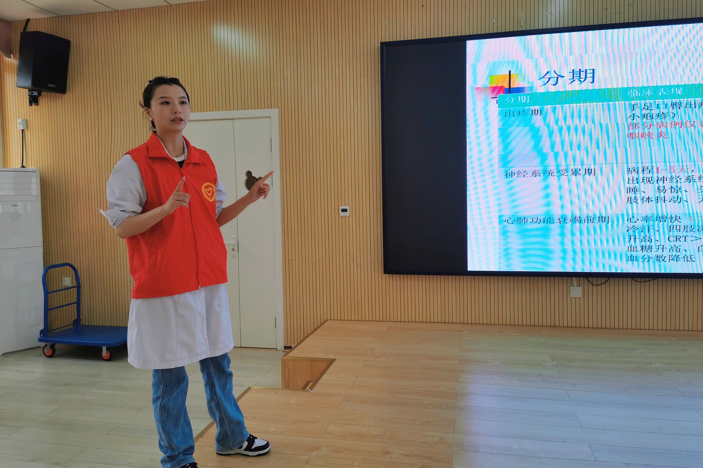 夏季是傳染病的多發(fā)季節(jié),為使幼兒教師了解夏季傳染病的種類、癥狀,提高與幼兒相關(guān)疾病的防病意識(shí),營(yíng)造健康快樂(lè)的成長(zhǎng)氛圍。同時(shí),增強(qiáng)幼兒相關(guān)的急救常識(shí),院校聯(lián)合保障兒童的健康安全。6月15日,醫(yī)院團(tuán)委、青年志愿宣講團(tuán)成員到花溪區(qū)第一實(shí)驗(yàn)幼兒園開(kāi)展“青春志愿行? 健康知識(shí)進(jìn)校園”知識(shí)講座。