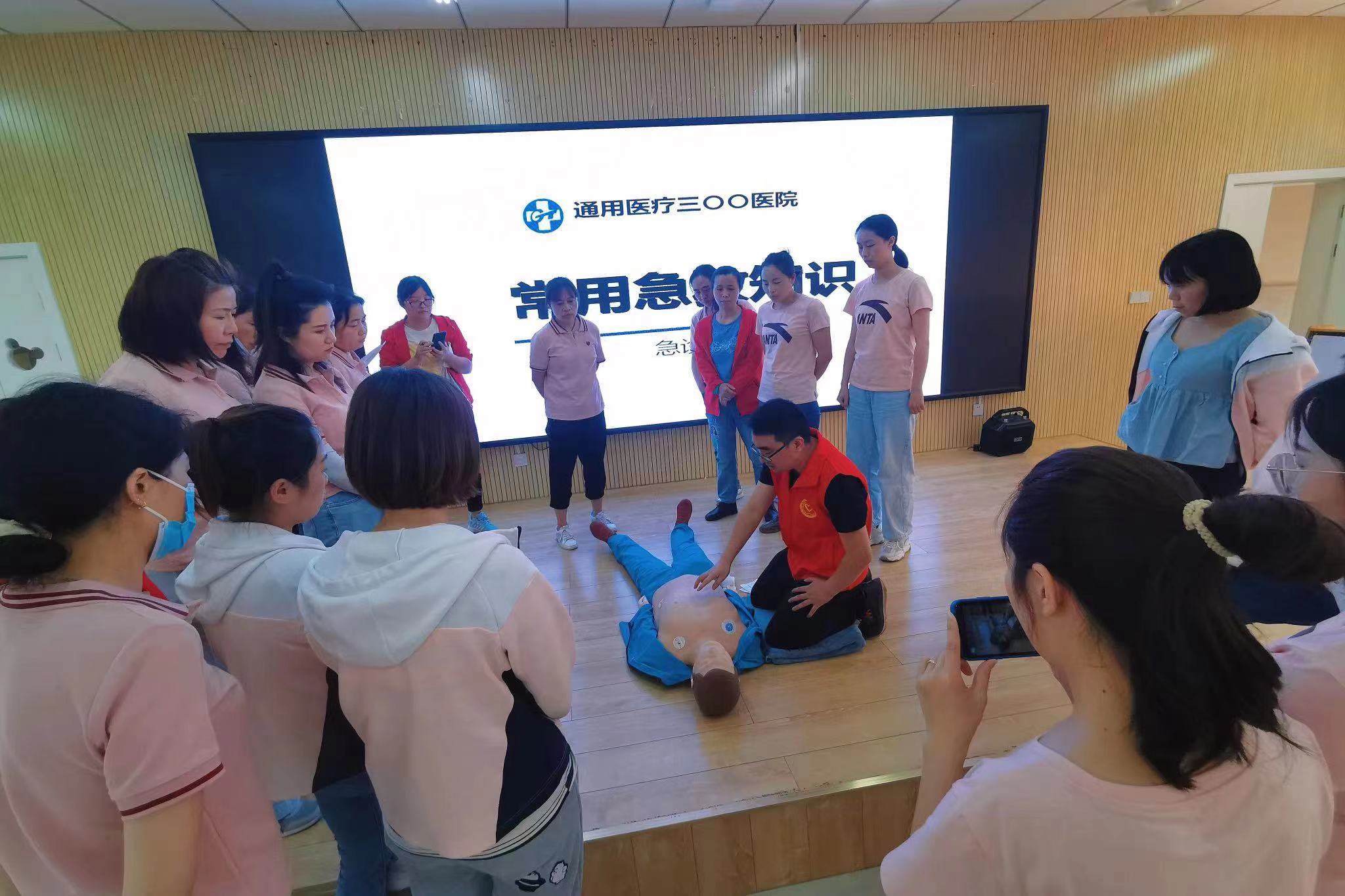 隨后,急診科醫(yī)生張映文講解了幼兒外傷包扎、幼兒心肺復(fù)蘇操作流程,以及幼兒海姆立克急救法的操作重點(diǎn)。他聲情并茂、幽默風(fēng)趣的講解方式得到了老師們的熱烈回應(yīng)。為了清楚指出操作位置,他邀請(qǐng)了老師們上臺(tái)為大家演示判斷生命體征和開(kāi)放氣道的手法及心肺復(fù)蘇的標(biāo)準(zhǔn)操作。講座結(jié)束后,老師們分為三組進(jìn)行演練,通過(guò)近距離的觀摩實(shí)踐讓老師們受益匪淺。